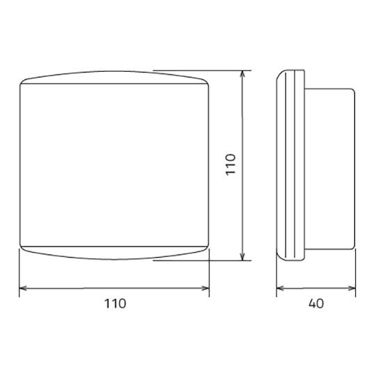 De draadloze ontvanger heeft een kunststof behuizing en de afmetingen 110mm x 110mm x 40 mm.